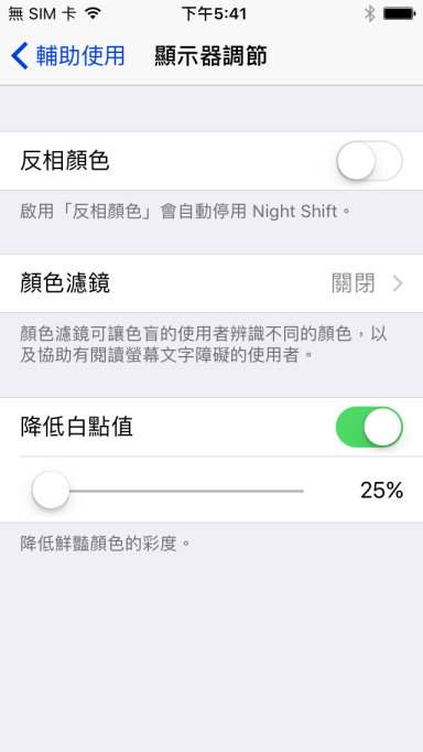 設定>>一般>>輔助使用>>顯示器調節