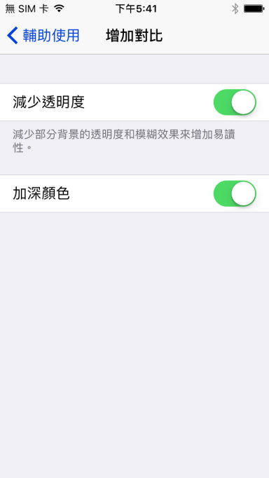 設定>一般>>輔助使用>>增加對比