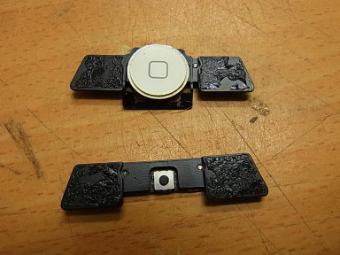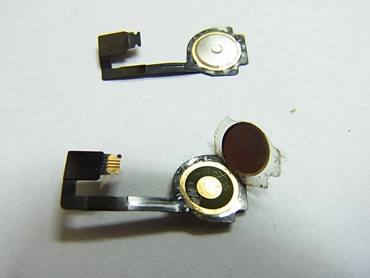 4s,home按鍵使用久了,按了還有彈性,要按很大力,很用力,才會有反應,但時常是沒反應。--這是氧化問題,圖一。
