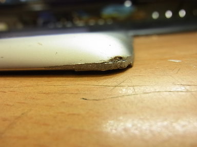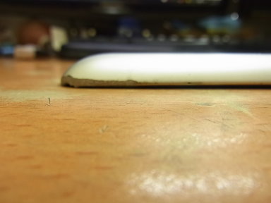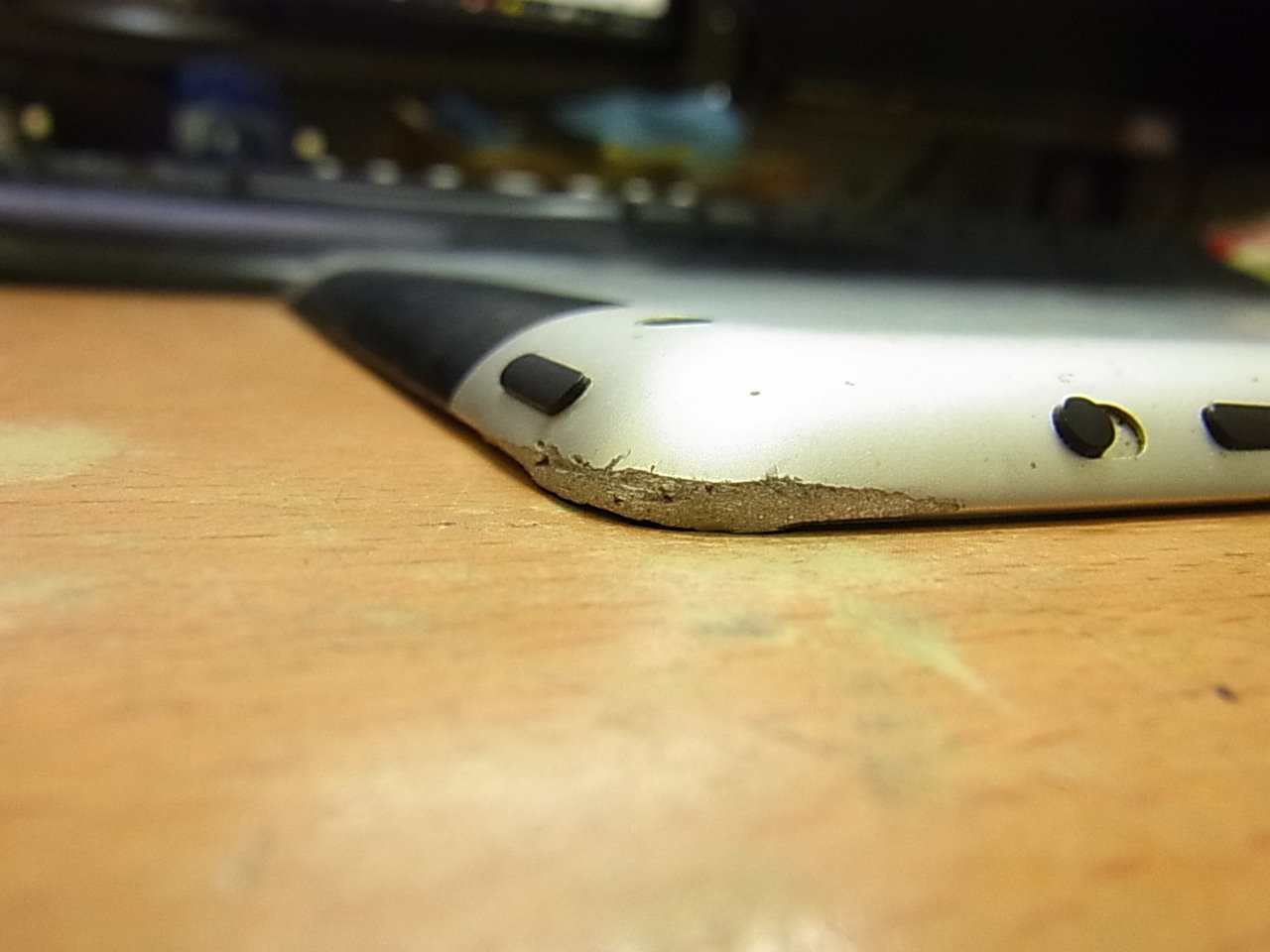 10台觸控螢幕破裂的IPAD,大概有10台都是掉落而破裂,摔落的瞬間,接觸地板的第一個角一定會凹陷,這很容易理解,但這是金屬殼,當凹陷後,當然是把金屬往內擠壓,整個殼就沒有所謂的平整,尤其IPAD又比手機重那麼多,摔下去很少不凹的。