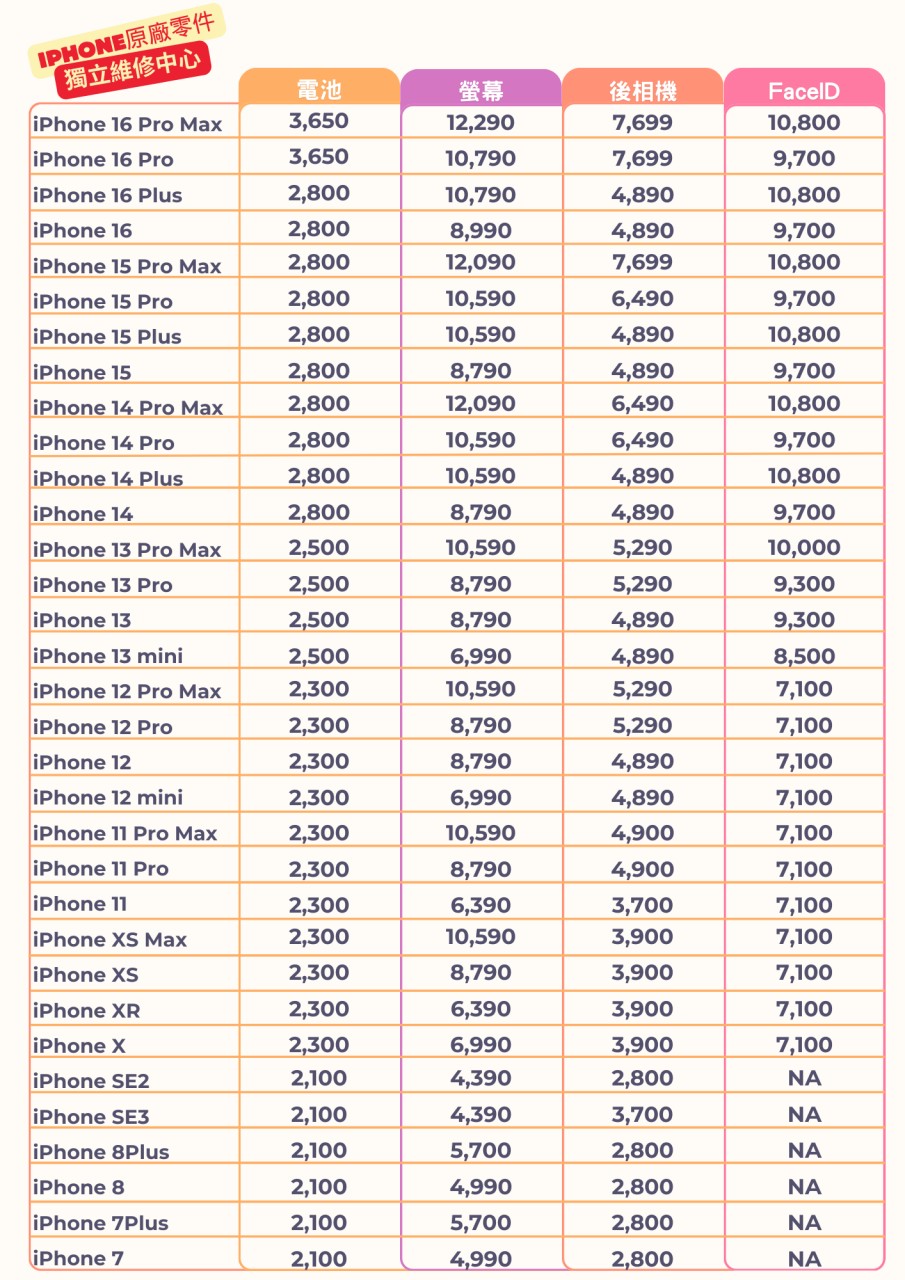 系列:螢幕、電池、後面玻璃、整殼(有些稱中框)